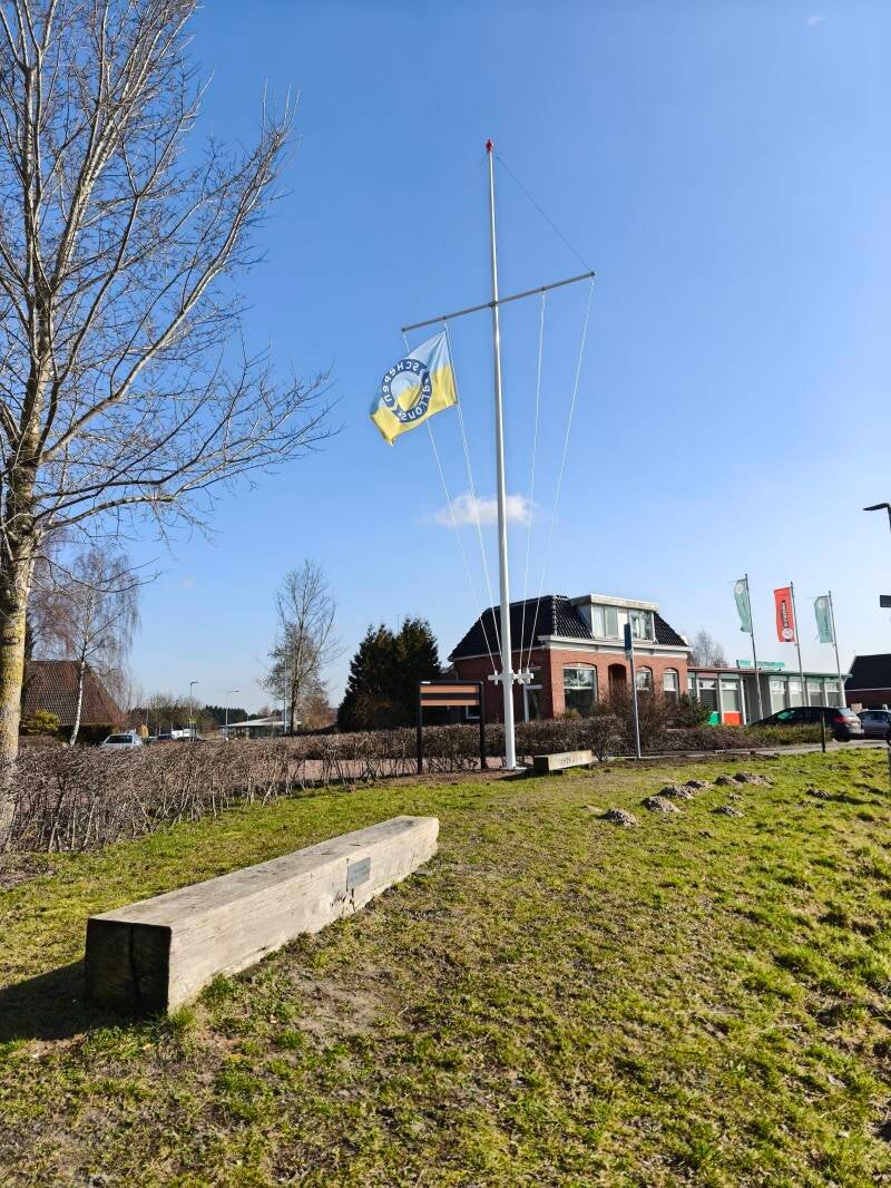Donderdag 26 februari 2026, werd eindelijke de lang gewenst vlaggenmast geplaatst